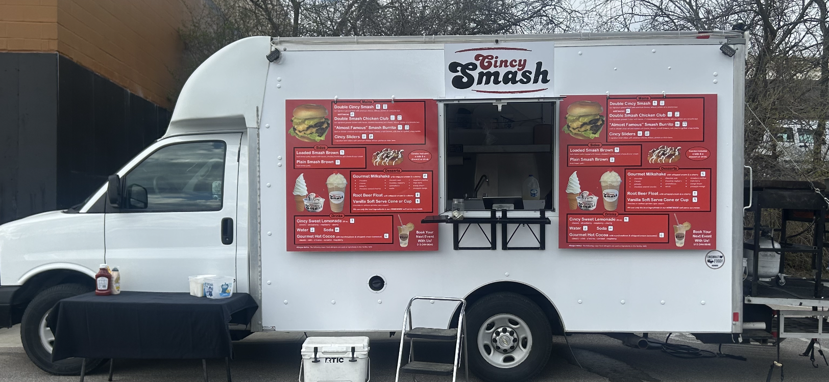 At Cincy Smash, we do everything smashed. We can’t wait for you to take a bite into one of our juicy burgers and chase it with one of our refreshing gourmet milkshakes. Our menu also includes a smash chicken club, loaded smash browns and our “Almost Famous” smash burrito.